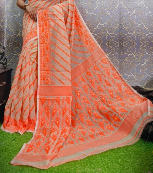 Cream & Peach color Jamdani