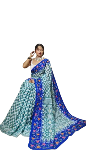 Embrace the rich tradition of Dhakai Jamdani with this stunning Light Blue Saree, designed to elevate your wardrobe with timeless elegance. This exquisite saree features a soft light blue base that brings a sense of serenity and grace, making it a perfect choice for formal gatherings, weddings, and festive occasions. Crafted with the finest Dhakai Jamdani fabric, this saree combines traditional weaving techniques with contemporary aesthetics. The standout feature of this saree is its heavy embroidered border, which has been meticulously crafted to add an opulent touch to the otherwise understated base. The embroidery along the border enhances the saree's overall look, giving it a luxurious and rich feel, ideal for festive celebrations or special family events. In addition to the stunning border, this saree features delicate buti work, woven intricately across the fabric. The butis are crafted in contrasting colors, creating a visually appealing pattern that draws attention while maintaining the saree's elegant simplicity. This traditional buti work adds a classic charm to the saree, ensuring that you stay true to your cultural roots. The light blue color of this saree provides a sense of calm and sophistication, making it versatile enough to be styled in various ways. Whether you prefer bold, statement accessories or a more minimal look, this saree adapts effortlessly to your personal style. For a grand occasion, pair it with silver or gold jewelry to accentuate its intricate detailing, or opt for delicate pearls for a soft, sophisticated look. The lightweight and breathable nature of the Dhakai Jamdani fabric ensures that you remain comfortable throughout the day or evening. Its soft texture feels gentle on the skin, making it an excellent choice for long-wearing occasions, such as weddings or traditional family functions. Despite its luxurious appearance, this saree is practical and easy to drape, allowing you to move freely while looking stunning. This Dhakai Jamdani saree is not just about tradition; it also offers a touch of modern flair with its subtle yet stylish color palette. The light blue base adds a contemporary edge, making it a favorite among younger women who want to blend tradition with modern fashion. It’s perfect for women of all ages looking to make a statement at festive gatherings or family celebrations. In terms of maintenance, we recommend dry cleaning this saree to preserve the intricate embroidery and delicate buti work, ensuring it stays as beautiful as the day you bought it. Add this Light Blue Dhakai Jamdani Saree with Heavy Embroidered Border to your collection and experience the perfect fusion of elegance, tradition, and comfort. Whether it’s a wedding, a cultural celebration, or a formal event, this saree is designed to make you look effortlessly graceful and stylish.