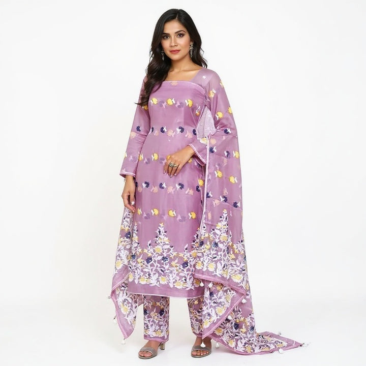 Cotton Dhakai Jamdani unstitched 2pcs Lavender Color Suit Set