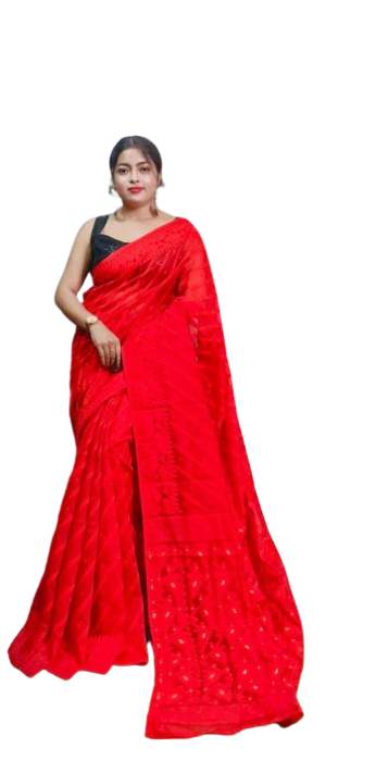 Traditional Cotton Jamdani saree in classic shade is versatile and comfortable. Grace up your lighter occasions by pairing it with minimal accessories. Saree is finished with alluring butis woven all over. Soft Cotton Handloom with traditional woven buti work in contrasting colours is befitting for the upcoming Festive season .